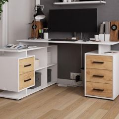 Стол компьютерный угловой СКМУ-3 Белый/Дуб крафт золотой