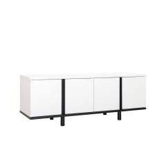 Это графичное сочетание, которое всегда на пике моды. Монохромный декор тумбы ТВ легко впишется в самый сложный интерьер. При изготовлении используются качественные ЛДСП толщиной 22 мм и 16 мм, кромка толщиной 2 мм и 1 мм. Такие материалы придают солидность внешнему виду, обеспечивают надежную основу и более долгий срок службы. В столешнице имеется вырез под провода для подключения мультимедиа техники, а регулируемые опоры легко компенсируют неровности пола.