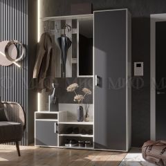 Прихожая компактна, занимает немного места. Прихожая содержит все элементы, необходимые для создания комфорта во входной зоне.
