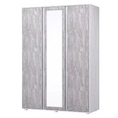 Функциональный трехстворчатый шкаф с оригинальным дизайном. Состоит из трех отделений: два со штангами для одежды и одно отделение с полками. Средняя створка выполнена с зеркалом.